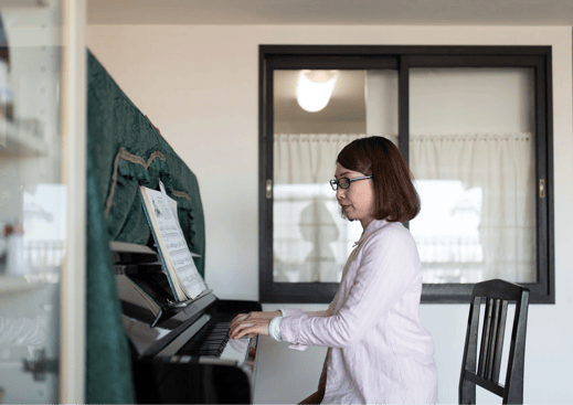 そんな大人の方が通われています。ジャンルは、ポピュラー・クラシック・演歌までご要望に合わせてレッスン。隙間時間に、ご自由に通われています。